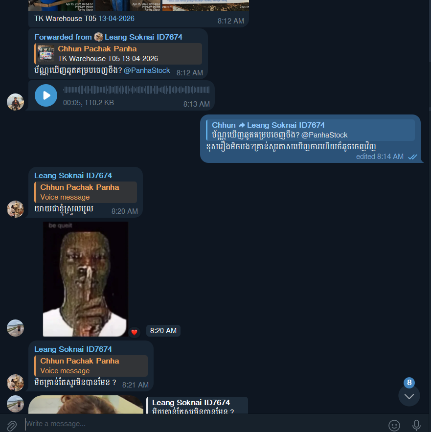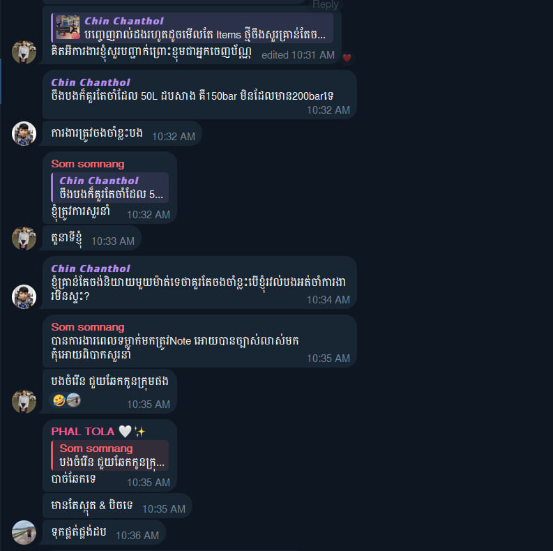 @ssk.opt01 @tep.sothea 1.ស្តុកពេលសួរនាំបញ្ហាដបចេញនិងដបចូលឆ្លេីយតបមកវិញដូចជាចម្លេីយផ្ជាញ់ផ្ចាល(មិនអោយតំម្លៃមកលេីពួកខ្ញុំជា sale Oder ឡេីយ)